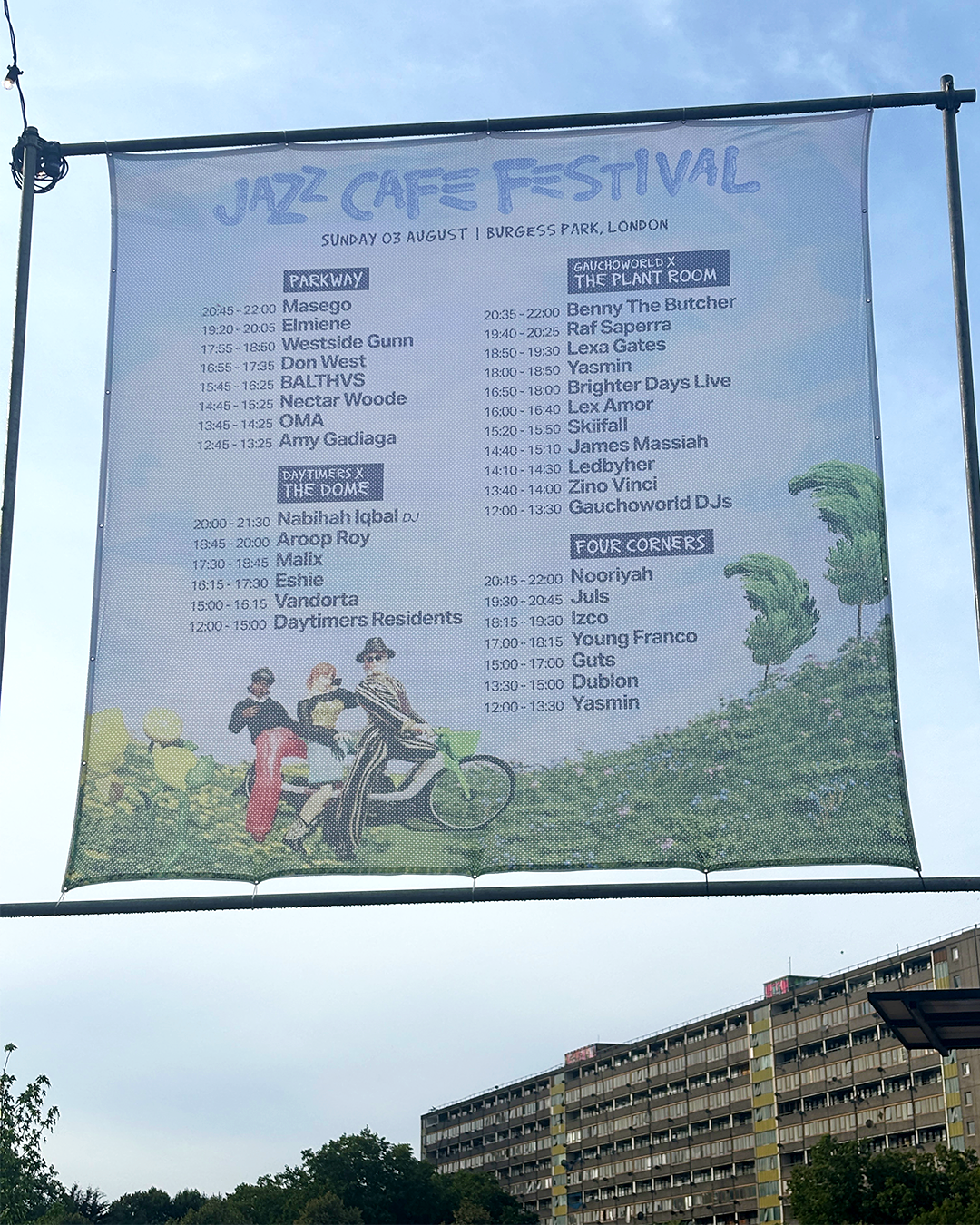 We designed the identity for the 2025 Jazz Cafe Festival, building a playful, character-driven system inspired by the festival’s community spirit. The visuals feature a lime bike tandem cruising through Burgess Park. The mix of local landmarks and animated posters gave the festival a fresh, welcoming personality and rooted it firmly in its South London setting.